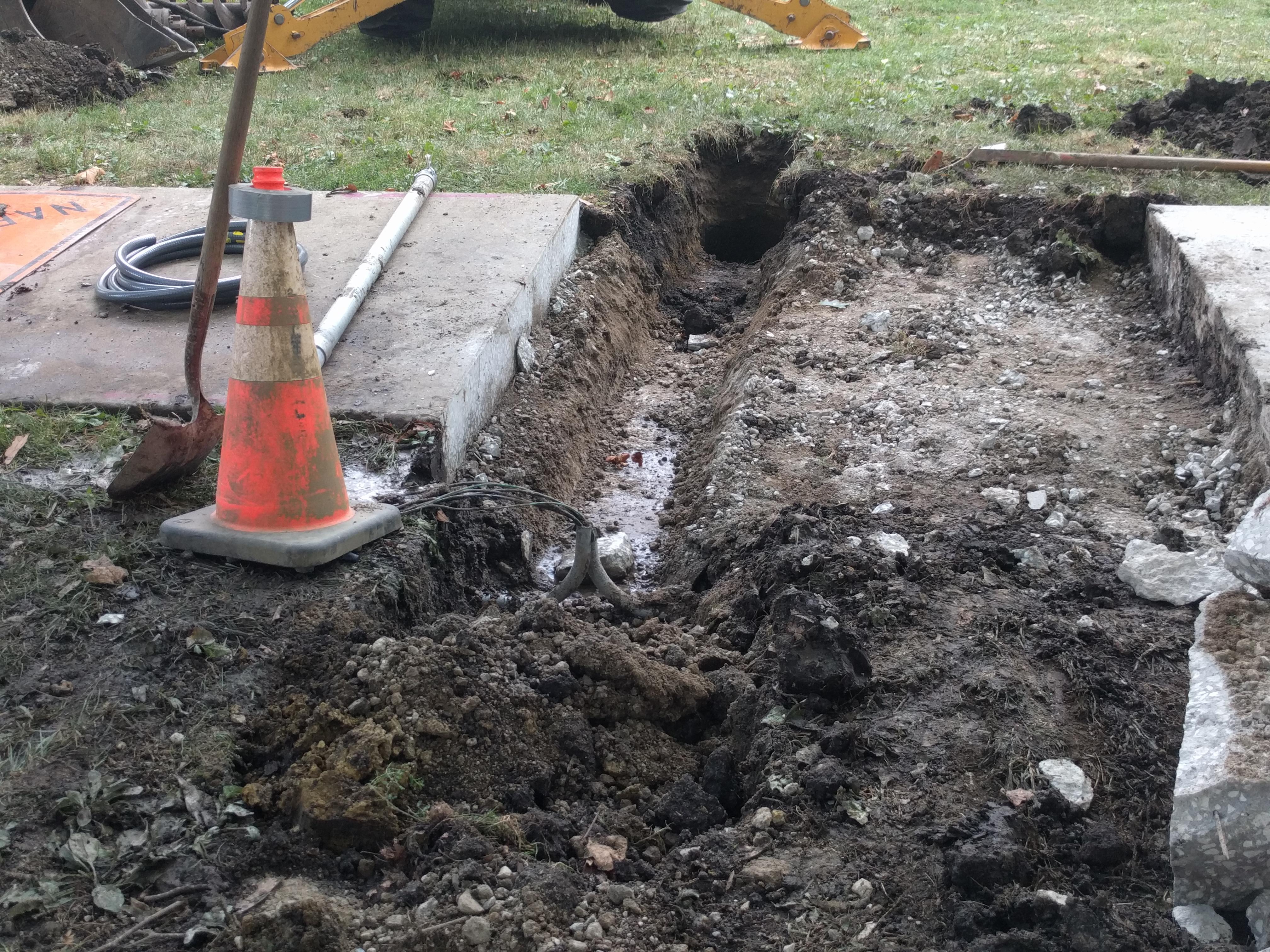 Facilities and Services found an unmarked conduit. Photo by Tony Heath.