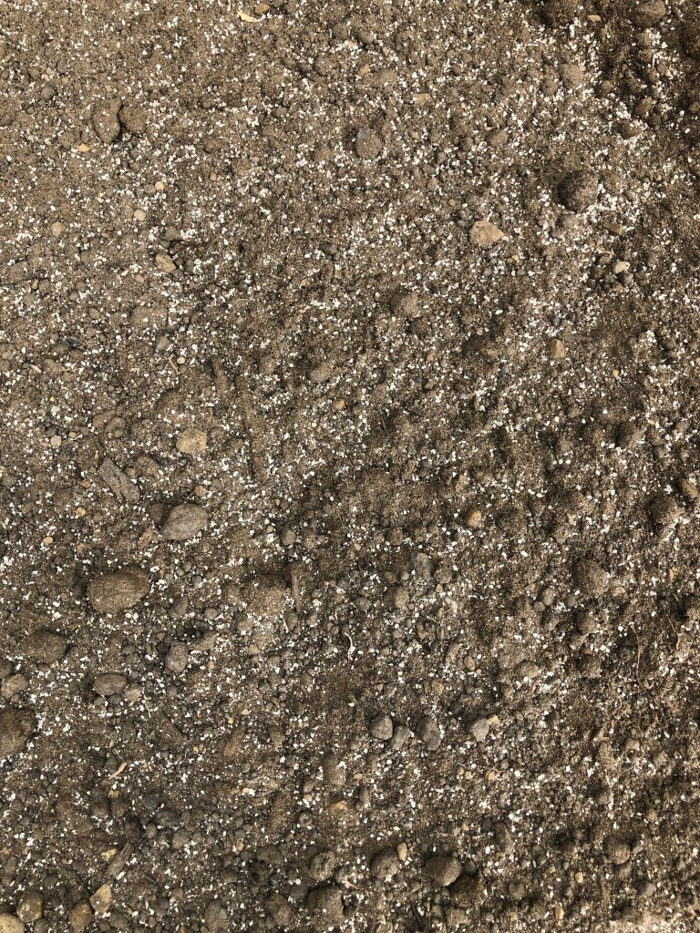 As mentioned, the east edge of the garden had been mismarked, which led to a ~100 ft² area that was over-excavated and backfilled with our soil mix. Josh, Stephanie, Eliana and I decided that the best way to correct it was to remove the soil mix (see photo below) and relocate it where needed to correct the 10″ grading gap. The over-excavated hole was then backfilled to original grade using our stockpiled topsoil.