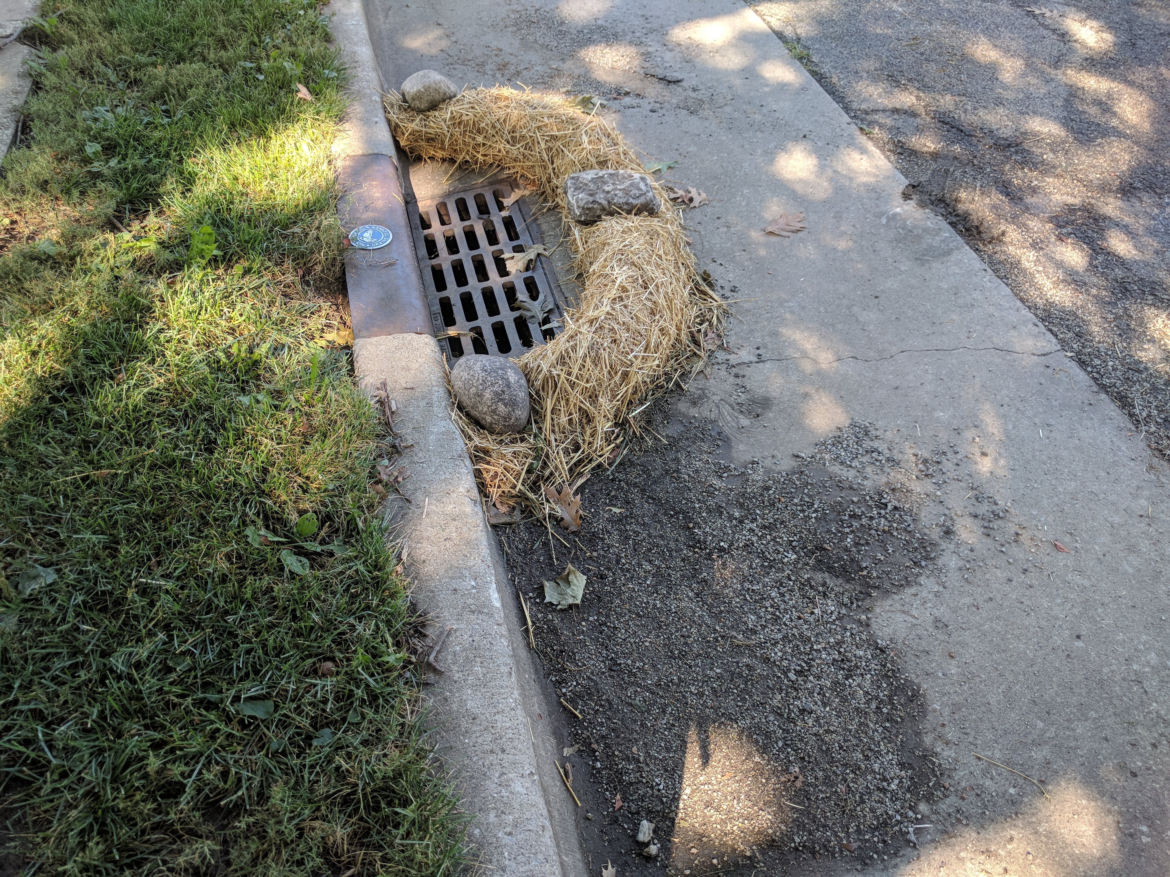 This afternoon, Prof. Art Schmidt also visited the rain garden to discuss his monitoring equipment’s installation plan. We had originally intended to install conduit that will connect the north and south cells today, but that wasn’t possible due to the shifting construction schedule. Instead, we decided that we would install this conduit later so we can minimize the amount of time that the south sidewalk is closed. This also gives Prof. Schmidt a little more flexibility on the equipment installation date, which in turn, allows his Field Methods class to participate and have real world experience.