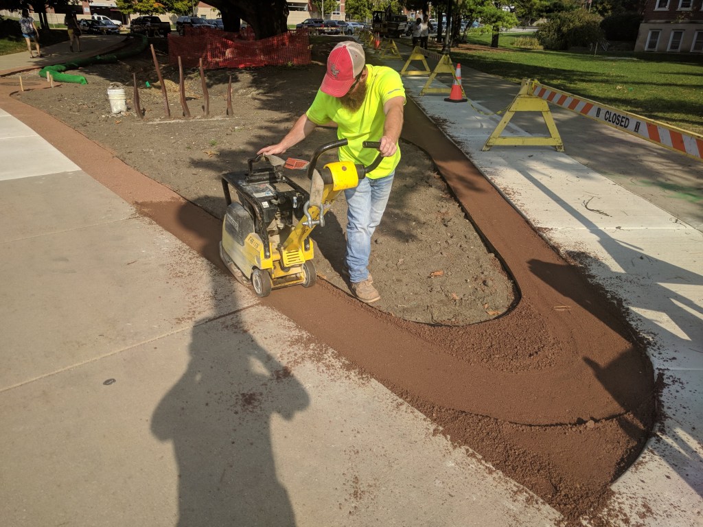 Josh tamping down the decomposed granite. Photo by Tony Heath.