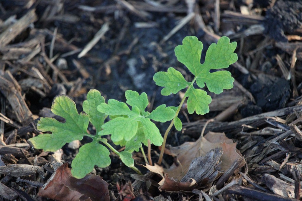 We welcomed another round of students, this time from Andrea Faber Taylor’s HORT 344 Planting Biodiversity and Aesthetics class. Eliana gave an overview on the background and functionality of the rain garden and I led them through the plant installation process, answering some great questions about the variety and selection of plants going into the garden. The students planted several species of sedge, as well as a mix of Iris, Rush, Cardinal Flower and Celandine Poppy in the shaded swale bottom. I have to say one of my favorite species in the entire garden is the Celandine Poppy, Stylophorum diphyllum, from Northcreek Nurseries. By the end of the week, the rain garden was over half done! In less than four working days, more than 5,000 plants were installed. What a week!