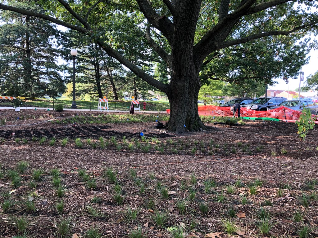 Three kinds of groundcovers installed: Rosy Sedge, Penn(sylvania) Sedge, and Foamflower.