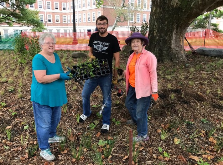 Linda Bailey, me, and Karen Folk planting Christmas Fern. Photo by Eliana Brown.
