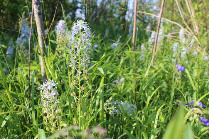 Full bloom Wild Hyacinth and Spiderwort, Roberts Cemetery Nature Preserve, Montgomery County, IL.