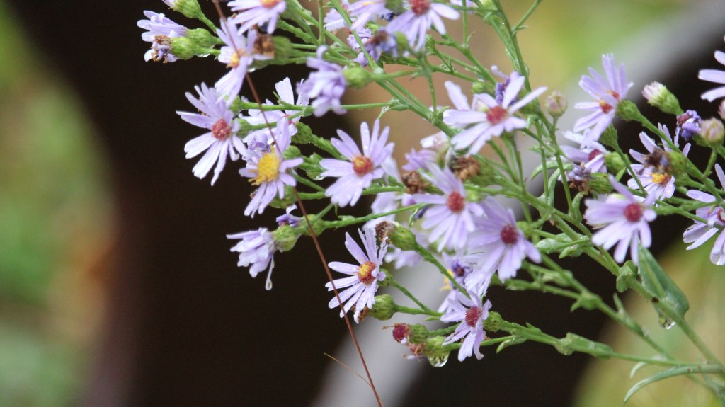 Even after a number of frosts and freezes, the garden is still looking great. The large drifts of Prairie Dropseed have turned to colors golden brown, creating a blanket of beautiful texture across sunny areas of the garden. Late season blooms from Smooth Blue Aster, Black Eyed Susan, and ‘Rozanne’ Geranium are still supporting pollinators as they prepare for the winter months ahead.