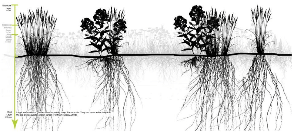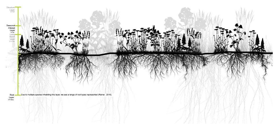 RORG’s design is based on the planting approach described in the book “Planting in a Post-Wild World” by Thomas Rainer and Claudia West. This approach includes the concept of designing with functional layers that form a complex yet organized landscape that reflects nature. RORG’s layers include: groundcover, structural, and seasonal. Our full plant collection list is found here, but it’s helpful to see them grouped by layer to better understand the garden design.
