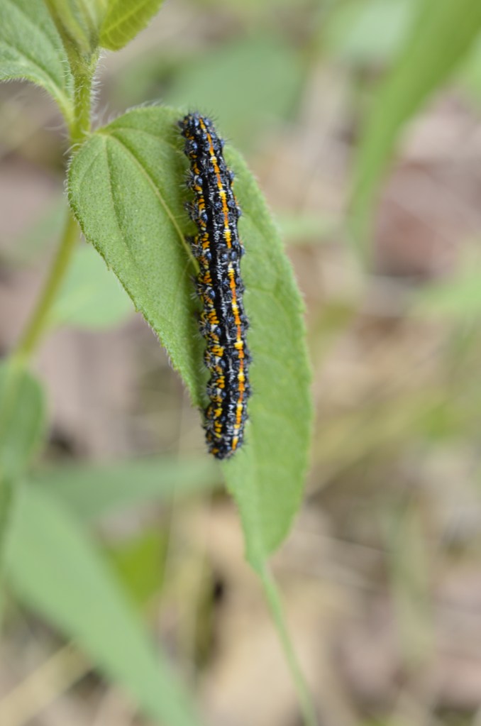 In the woods, I’m often on the hunt to find one of my favorite insects – caterpillars! Caterpillars come in so many different shapes and sizes. With over 11,000 species of moths found in North America and at least 750 butterfly species, there are thousands of different caterpillars to be found! I’ve seen my fair share – from the io moth caterpillar (look don’t touch!) to the spiny oak slug caterpillar, to clymene moth caterpillar (pictured), these critters are marvelous to behold.