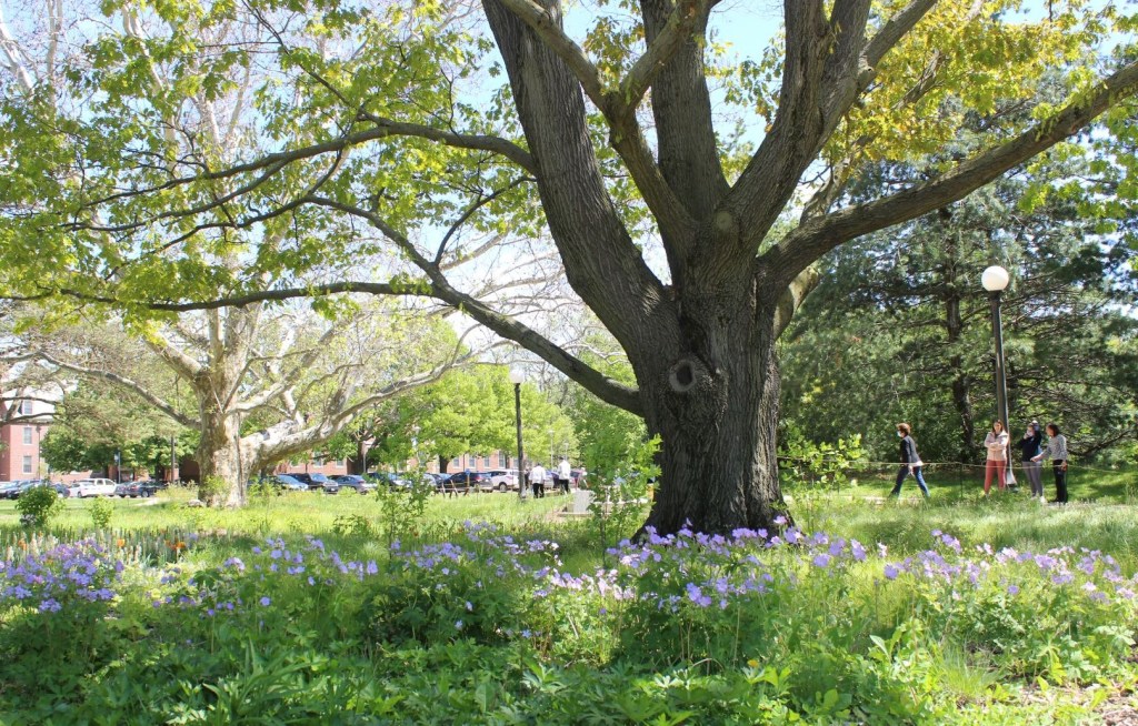 Need some examples? The Red Oak Rain Garden has prime examples of soft landings! Look underneath the red oak – native plants provide a safe space for pupating caterpillars to complete their life cycle.