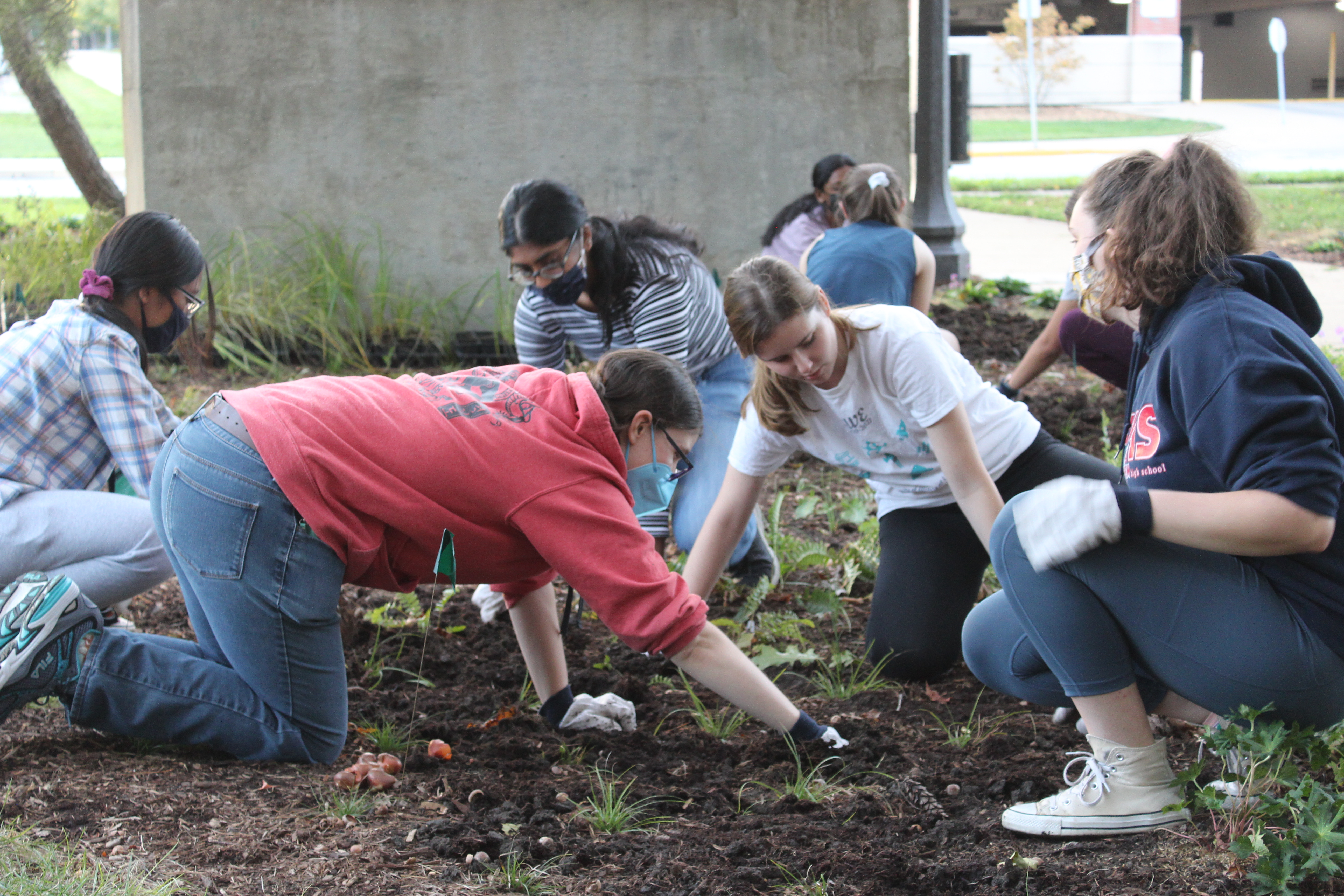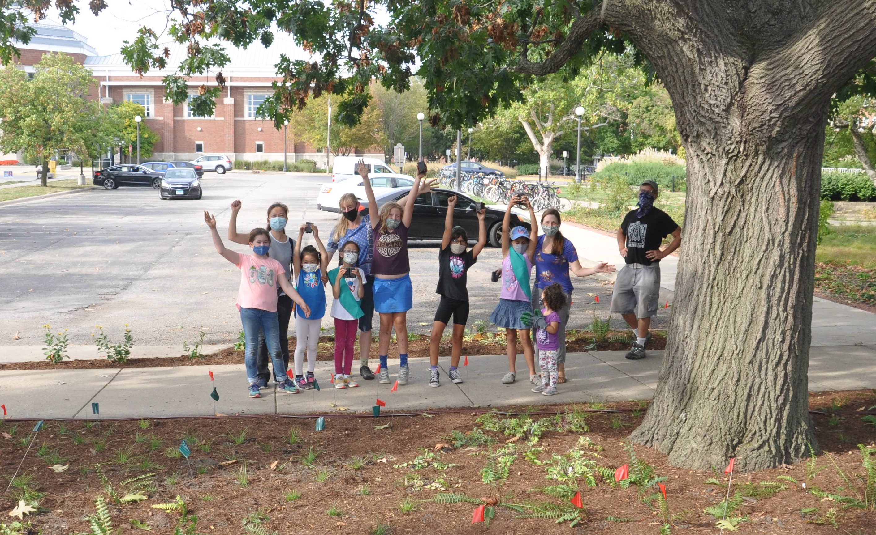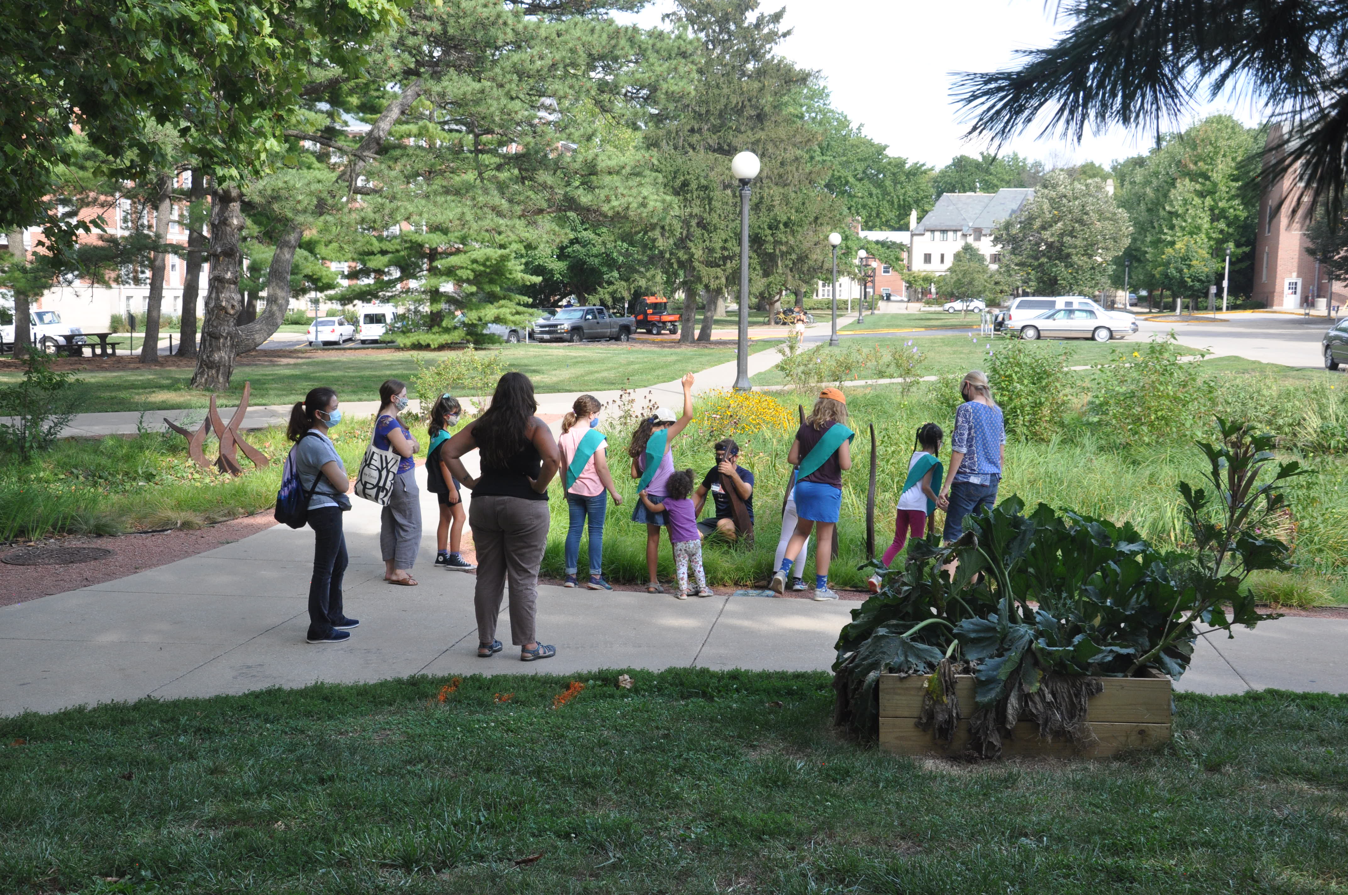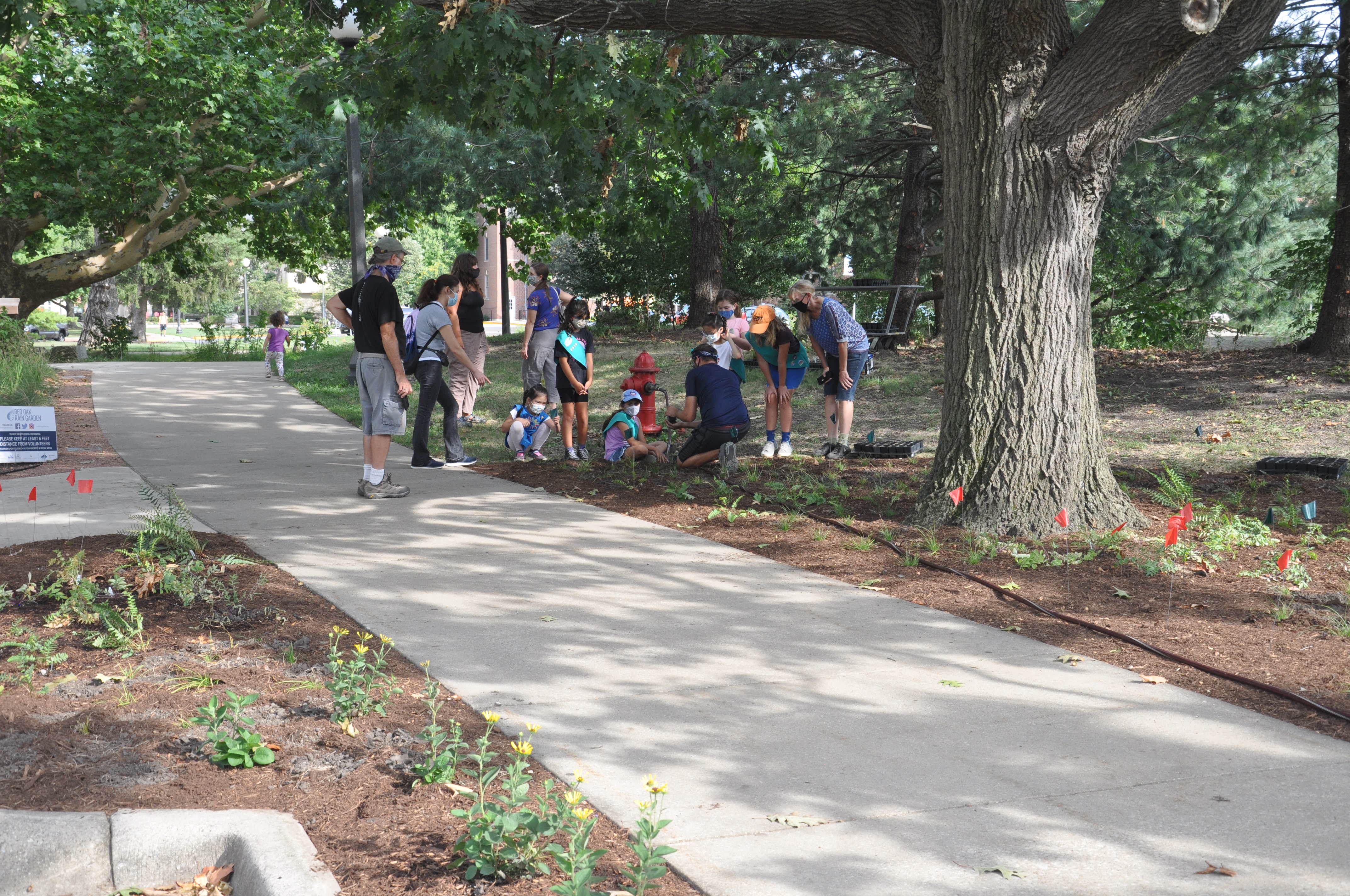 Over that weekend, RORG hosted its first team of youth volunteers. Girl Scout Troop 2915 helped plant more than 100 Virginia Bluebells. They also learned about rain gardens from Layne, who gave them a tour. And afterwards, their troop leader, Julie Nieset, a wetlands plant ecologist with INHS, led a scavenger hunt around RORG to further the children’s engagement with the garden. They were thrilled when each one was sent home with their very own Virginia Bluebell to plant. The girl scouts are excited to return to the garden in Spring 2022 to see their plants sprout!