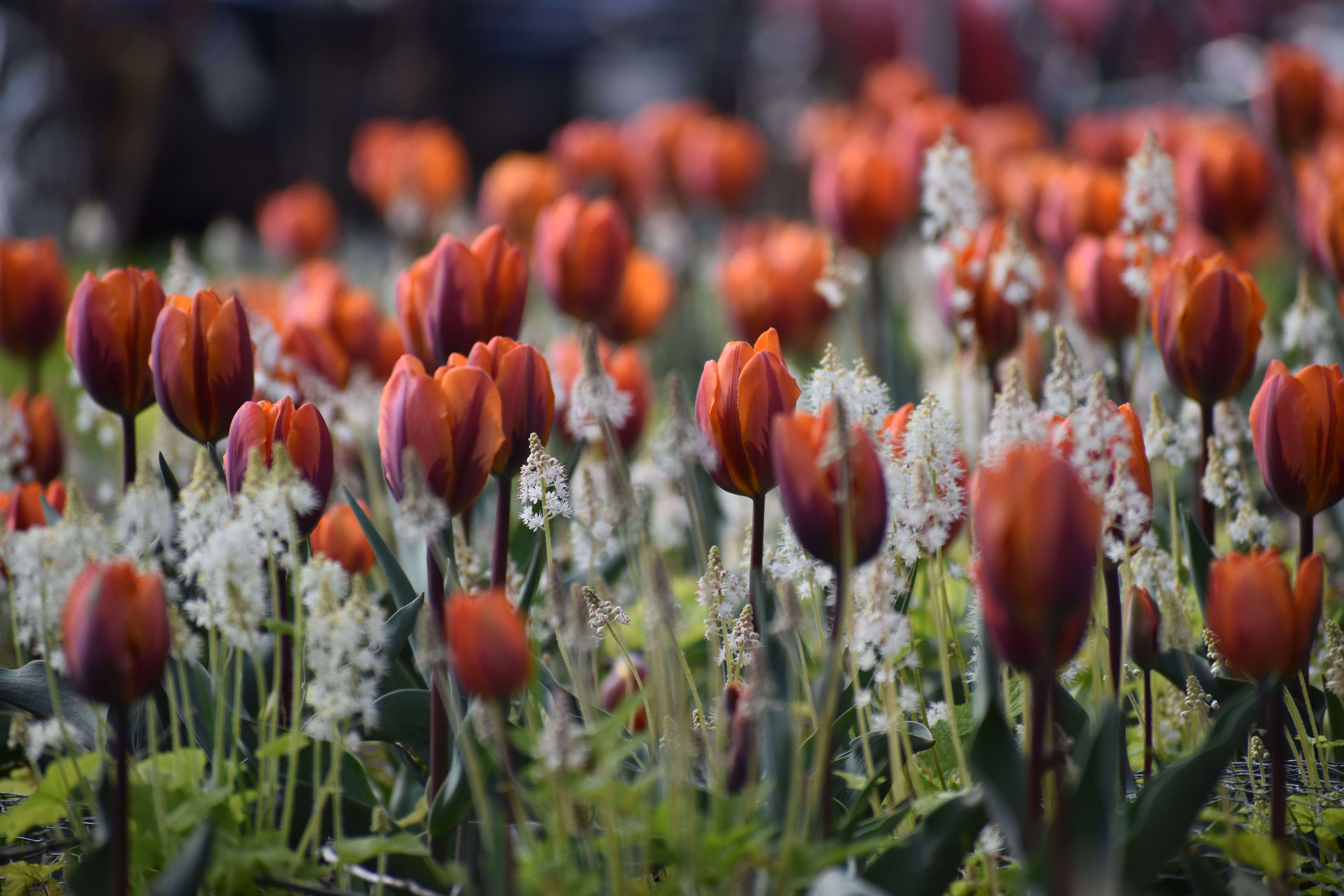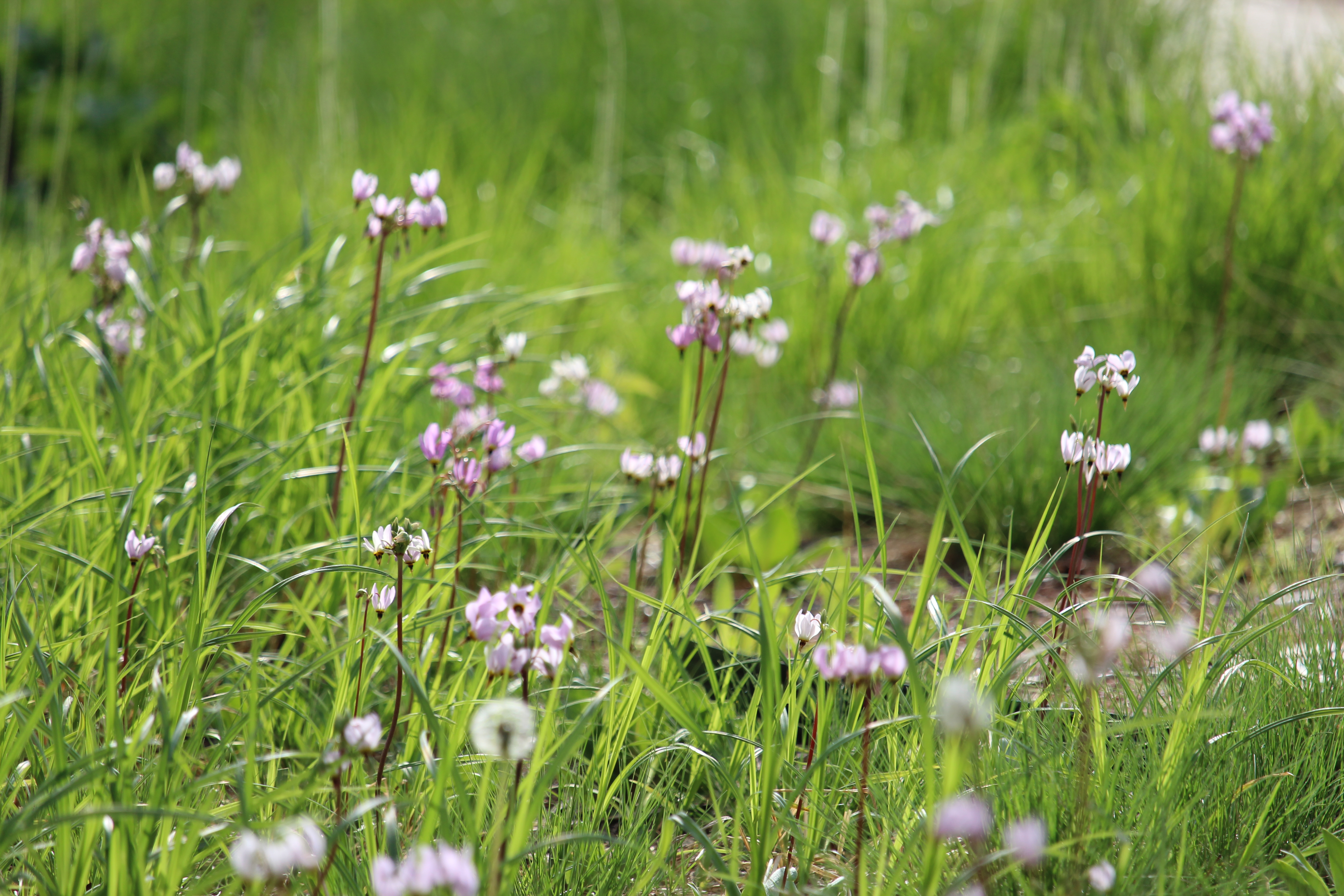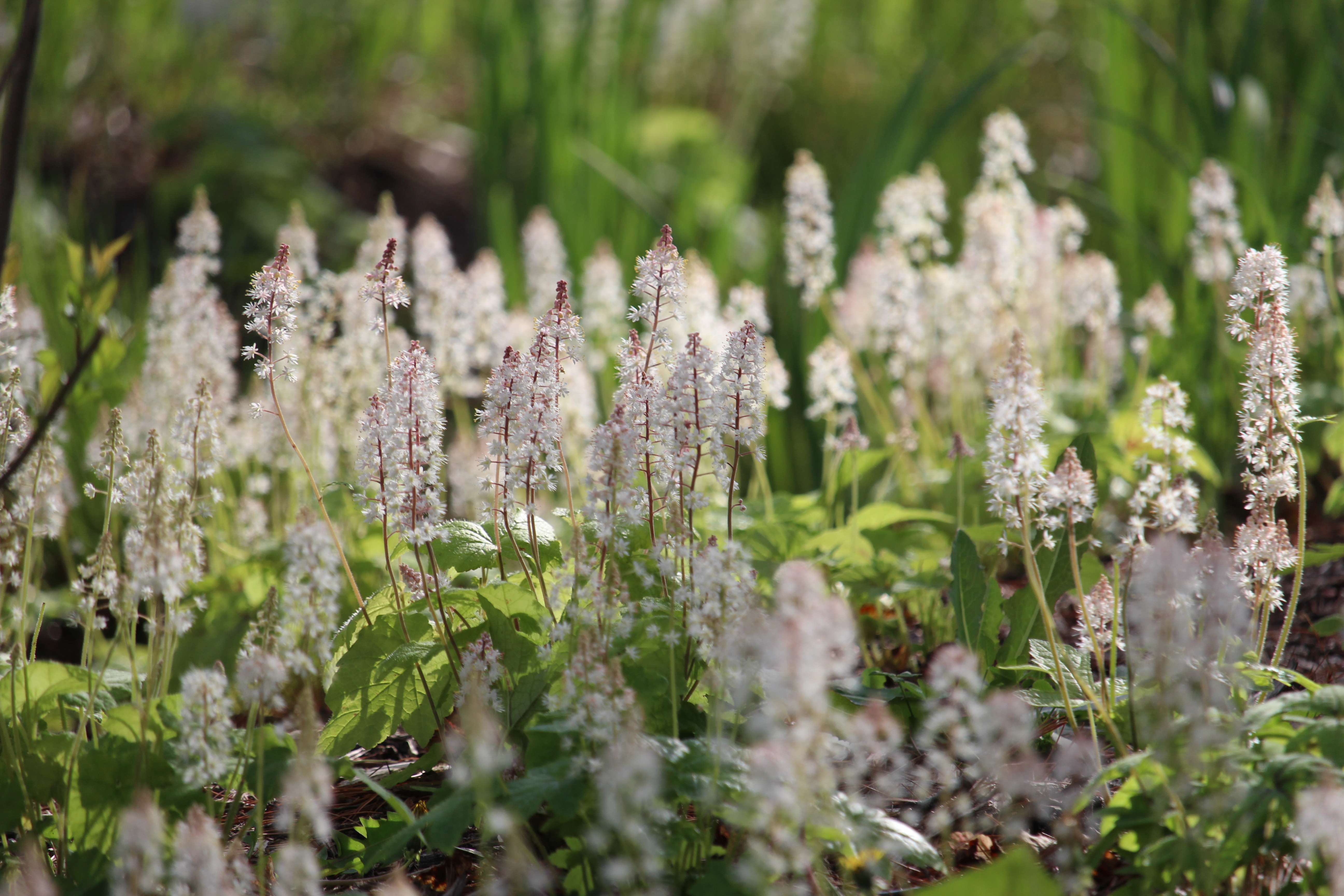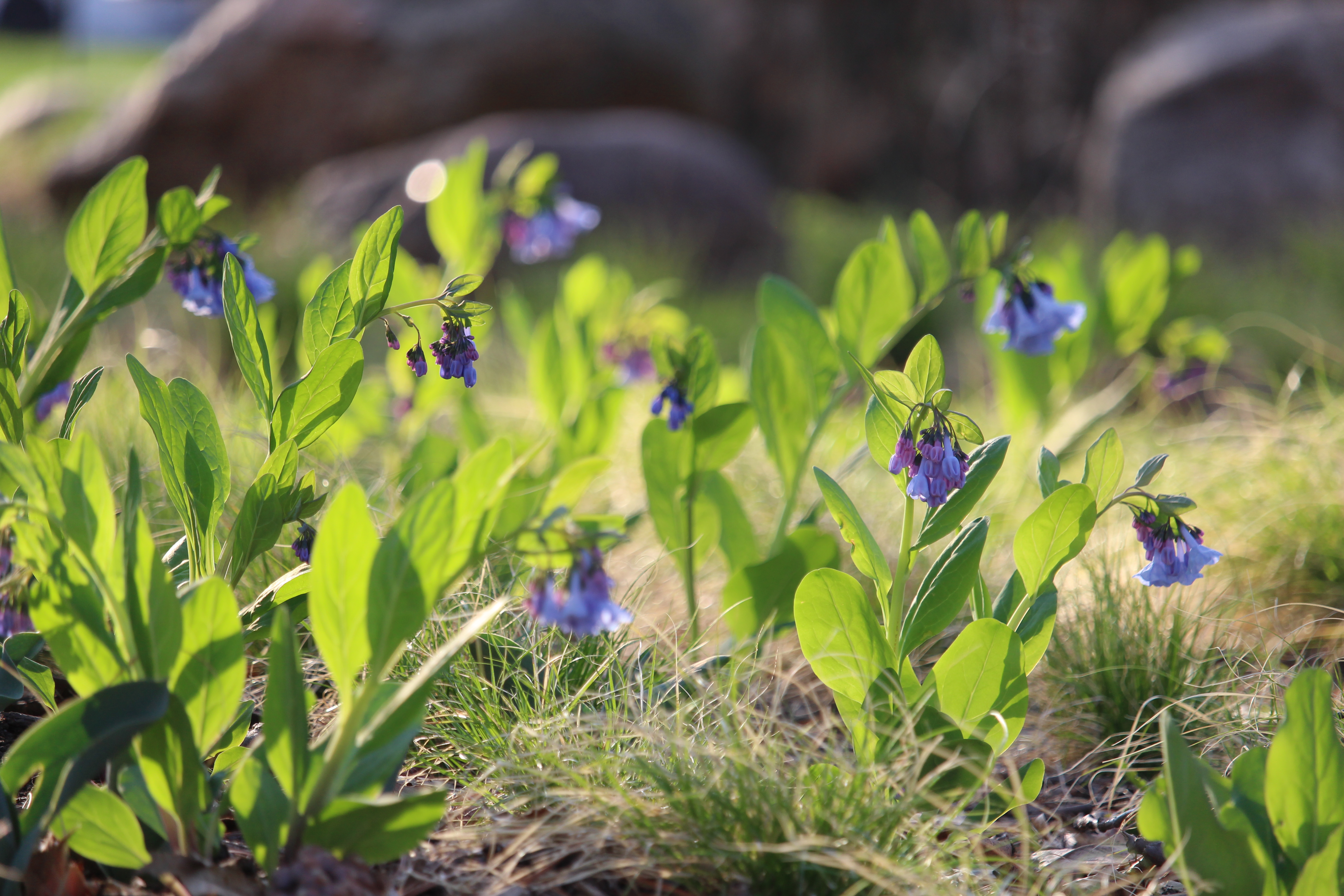 Early spring was met with an array of stunning spring ephemerals that were installed in fall 2020. Hundreds of Virginia Bluebells (Mertensia virginica), ‘Prinses Irene’ tulips, Shooting Star (Dodecatheon meadia), Wild Geranium (Geranium maculatum), Foamflower (Tiarella cordifolia), and Woodland Phlox (Phlox divaricata) were in bloom simultaneously. They were very popular with passersby, many of whom would stop by for photo ops. The groundcover plants installed in the 2019 renovation filled in nicely at the beginning of their second growing season. As spring progressed many other species began blooming including Southern Blue Flag Iris (Iris virginica var. shrevei) and Prairie Alumroot (Heuchera richardsonii). Communications Intern Sandra turned out to be an excellent photographer and captured many of our spring bloom photos you see.