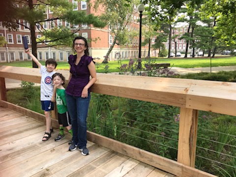 In early June, the long-awaited boardwalk bridge that spans the garden was completed. Built of sustainably-sourced Black Locust harvested from Allerton Park and milled by The Wood Shop, the bridge was built by Olympic Construction, LLC headed by Andy Frick. Shannon Tucker, RORG Construction Manager, shepherded the process, working with Dave Dowler, F&S Associate Director of Construction Services. In July, Mike Brown, F&S Code Compliance Specialist, granted permission for the bridge to be opened. Prof. Bill Gamble served as our Structural Engineer. Funding came from ICECF. We are grateful to everyone involved in the creation of this beautiful amenity and plan to write a future blog with more details. In the meantime, learn more by reading this article from the F&S Insider Magazine.
