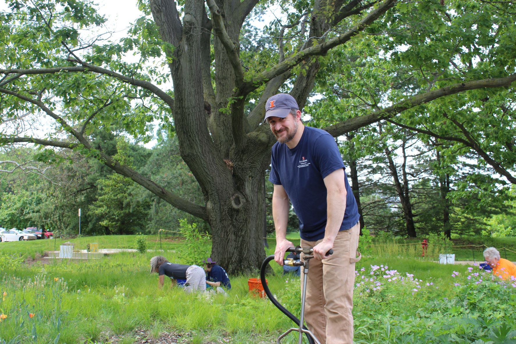In May, Extension Horticulture Educator Ryan Pankau boosted the health of RORG’s 200-year-old red oak by injecting a mycorrhizae soil inoculant into the soil around the base of the tree. Ryan writes, “These valuable fungi form a symbiotic relationship with plants by infecting roots to derive energy from plants that they cannot create on their own. In return, the plant root’s ability to absorb water and nutrients is enhanced by the fungi. In this relationship, both organisms benefit and thrive from the shared resources each can offer.” Read more about the process in Ryan’s News-Gazette In the Garden column.