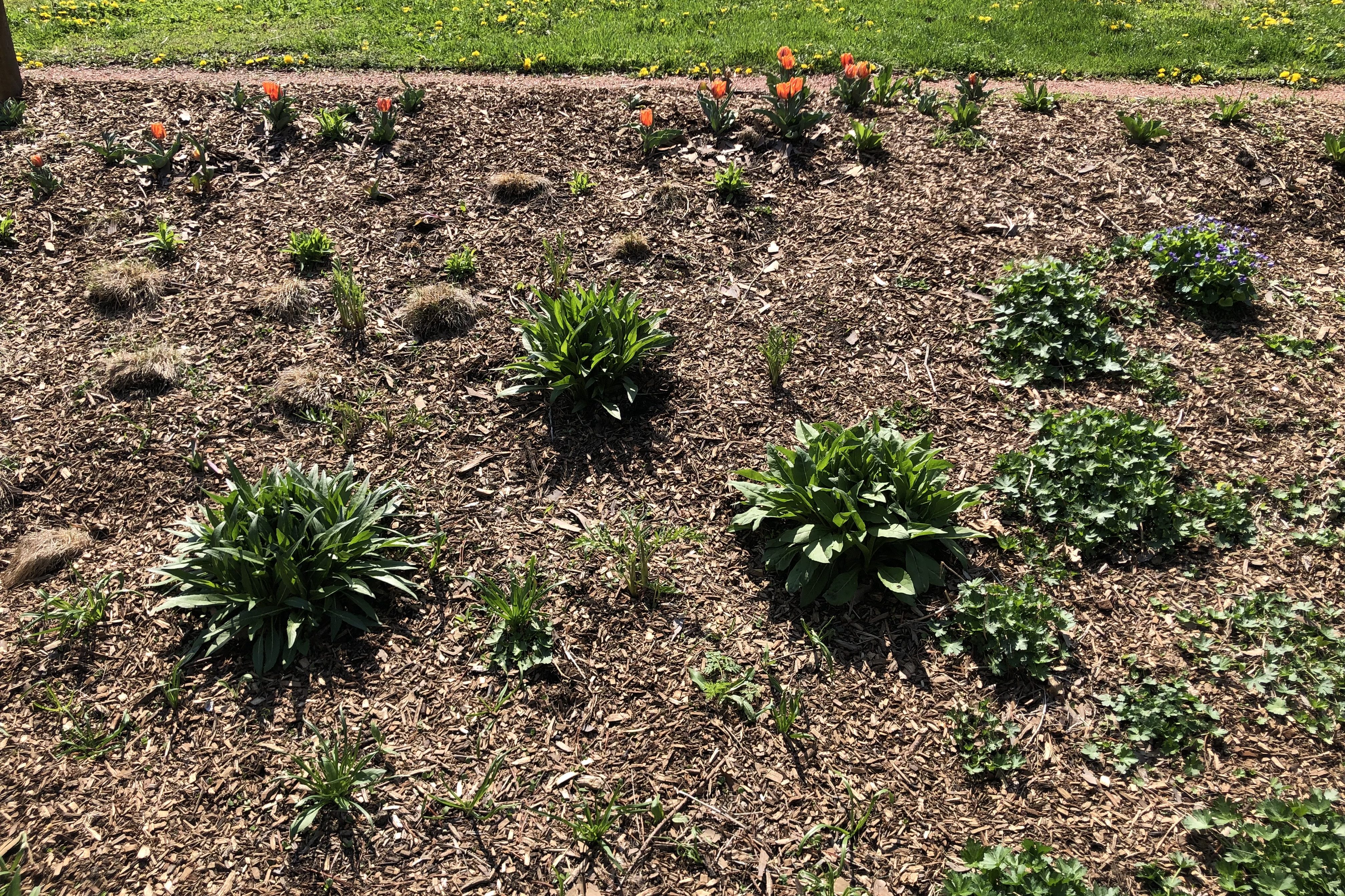 5. Weeding: Chicory seeds from years past are still plaguing certain areas of the garden, with the early germinating weeds popping up here and there. The nearby Dorner Drive Retention Pond area, where many Chicory and Thistle seeds originated from, was recently seeded with a high-quality prairie seed mix. We believe that this should help the problem diminish.