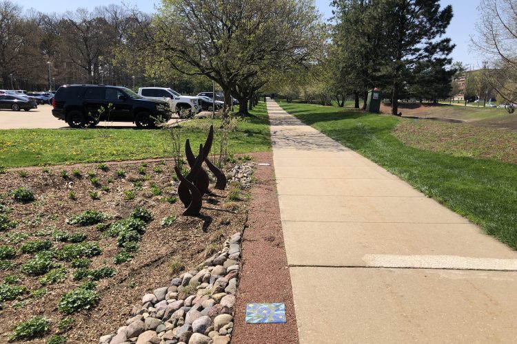 2. Crushed Granite Border: Stormwater flows over the past year also damaged the crushed granite border and steel edging along the south sidewalk. To fix this, we removed and replaced the collapsed section of the steel edging and worked with UIUC Facilities & Services to add and compact additional crushed granite in that area. New stones, added for the first maintenance task listed above, now help keep the edging in place along with breaking up the point flow of stormwater.
