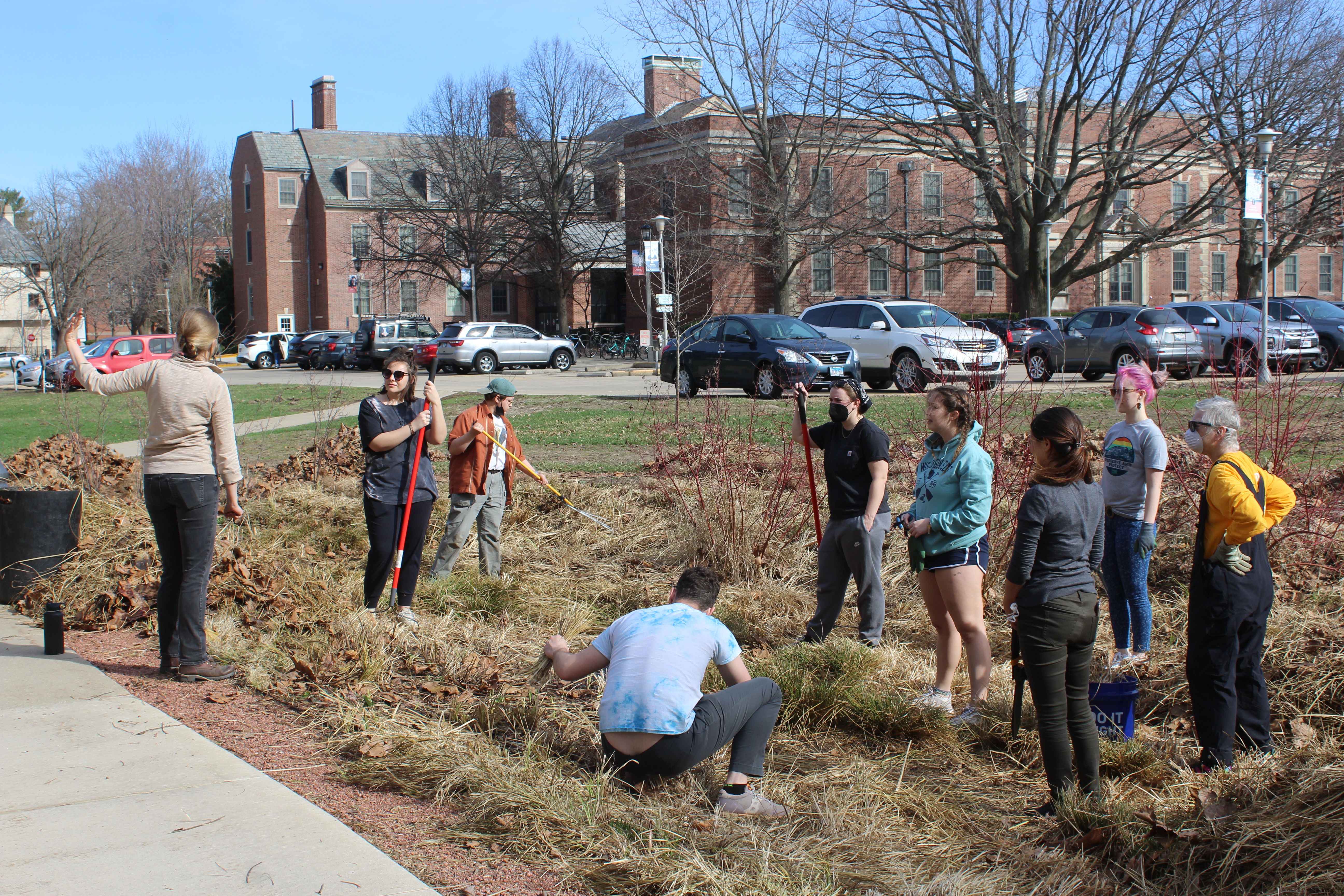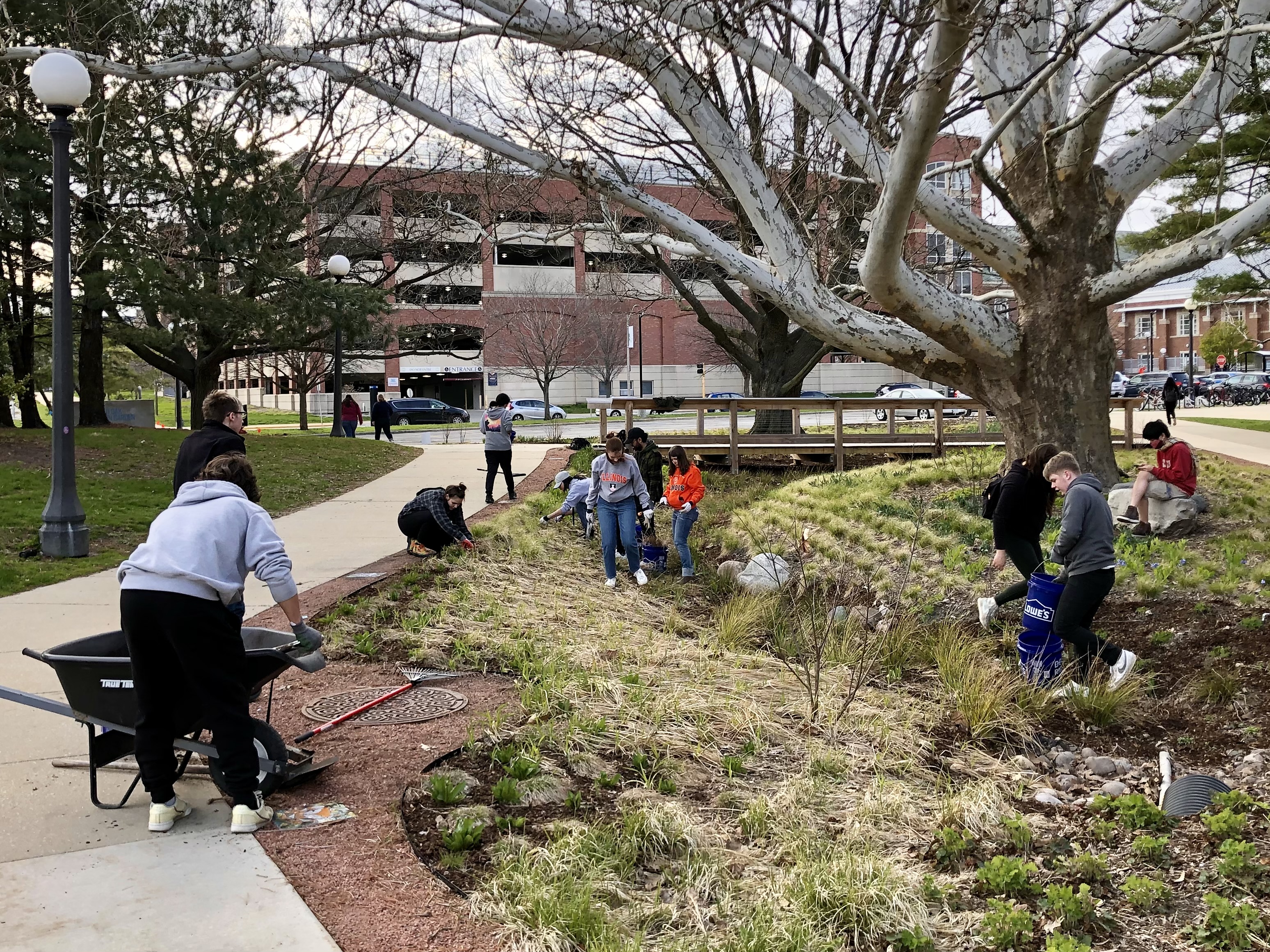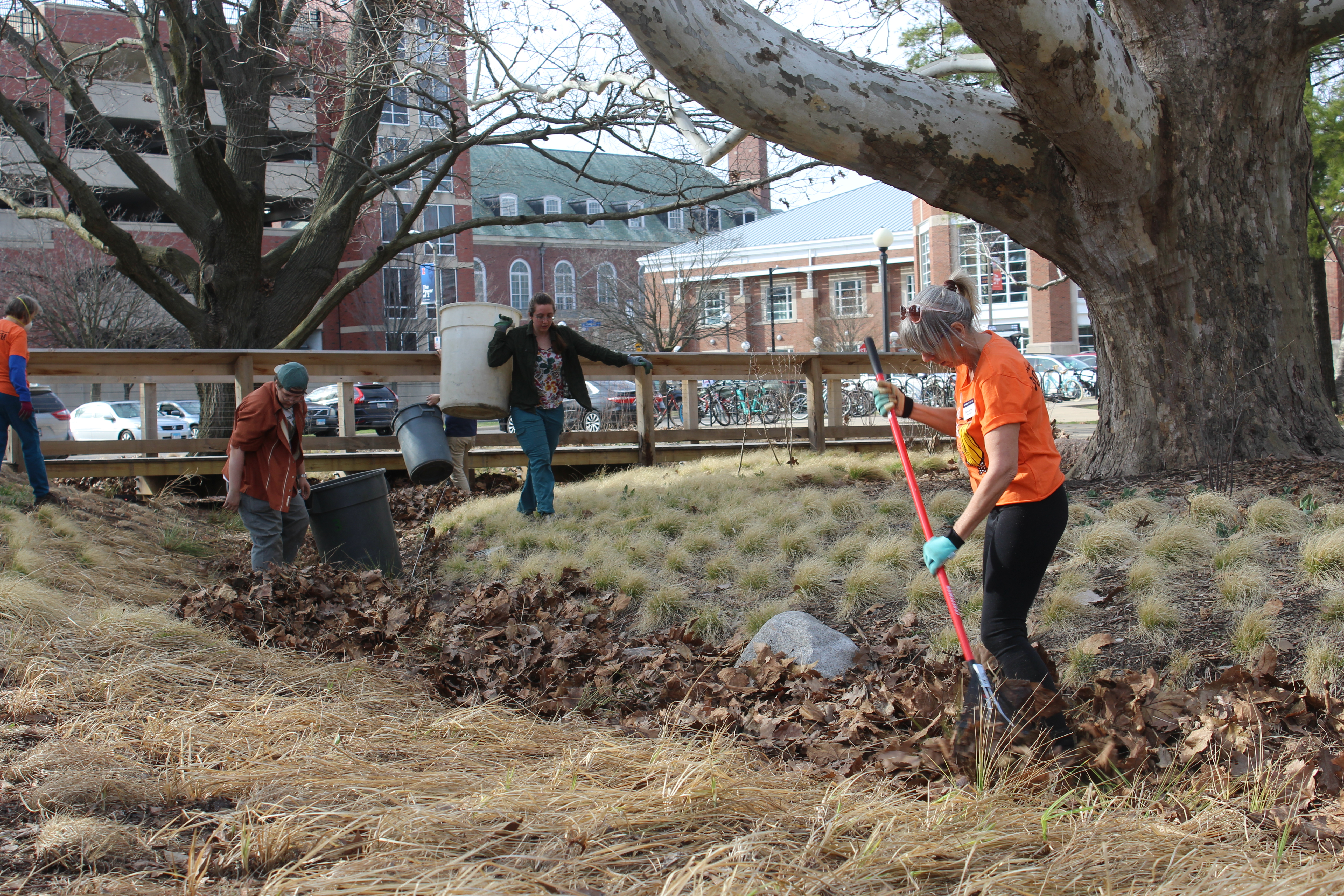 By late March, it was time to get into the rain garden to prepare for the growing season. We were happy to host Bridgette Moen’s Landscape Architecture Studio class, who worked alongside RORG Team members and Champaign County Master Gardener and East Central Illinois Master Naturalist volunteers. This annual event is a collaboration with Facilities & Services, who support our efforts by providing staff to help transport debris from the rain garden.