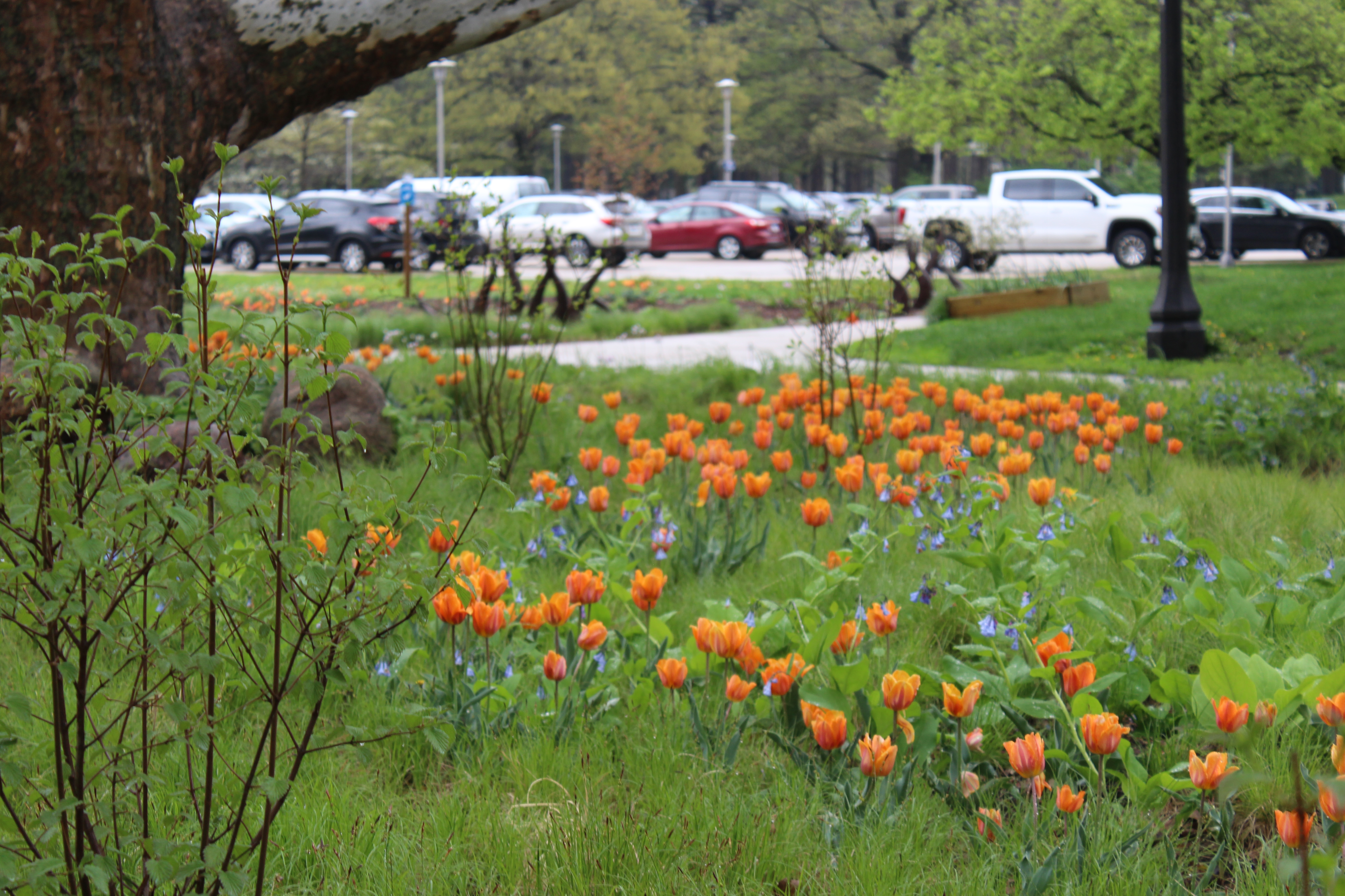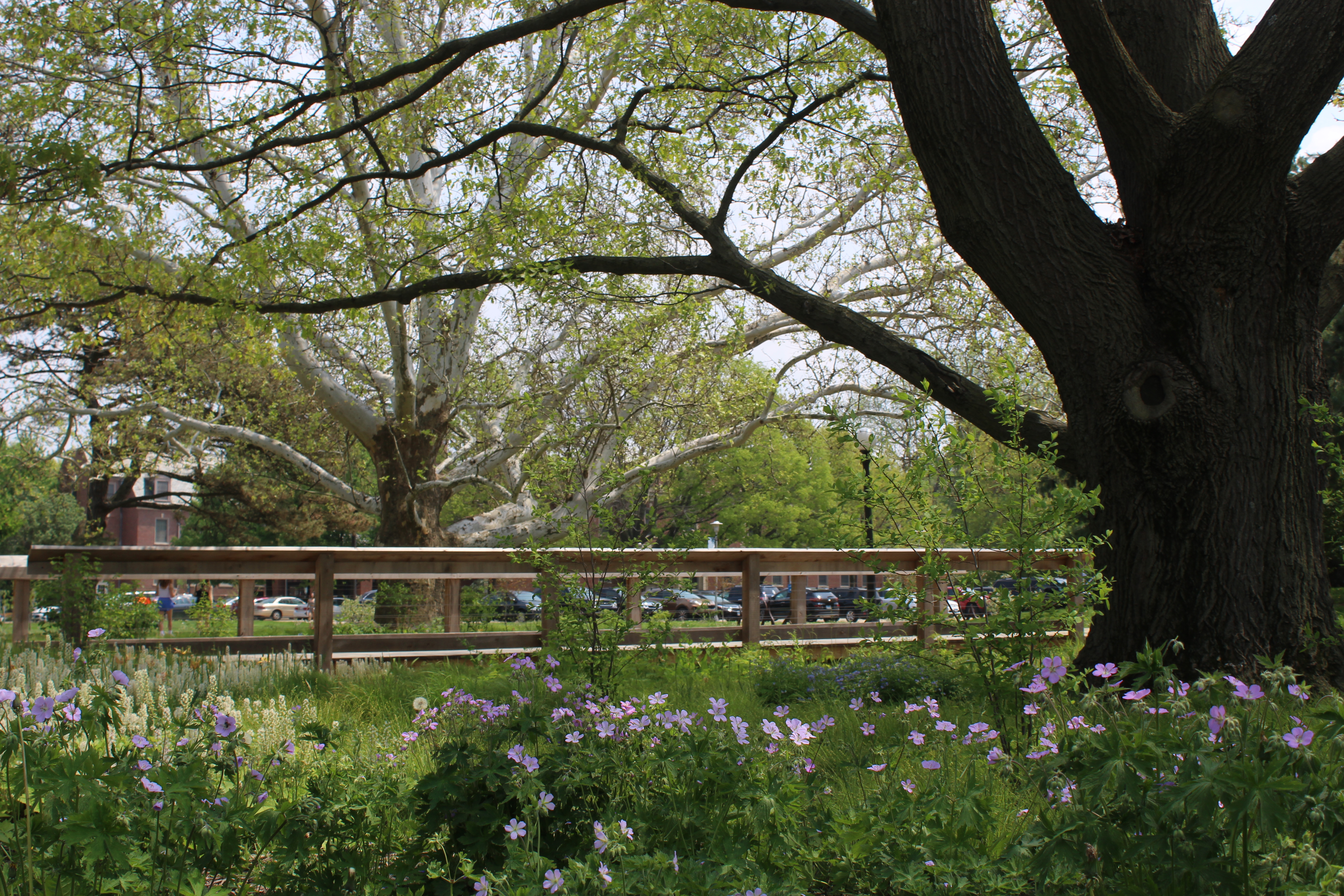 RORG’s plants, entering into their third growing season since the renovation, started the year off with a great show. Our spring ephemerals, including the popular Virginia Bluebells and ‘Prinses Irene’ Tulips, were beautiful as always. It was clear early this season that many of RORG’s groundcover species had become well established, and by May, nearly the entire 10,000 square foot rain garden was covered in a functional, lush carpet of vegetation.
