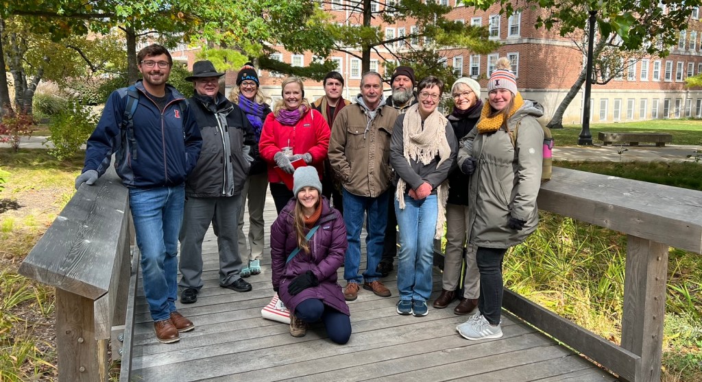 Fall was a busy season of tours and presentations for the RORG Team. In early September, we held a new volunteer RORG orientation and tour. Later in the season, tours were given to folks attending the With Illinois Campaign: Celebrating the Impact in ACES event and to the Illinois Extension Natural Resources, Energy, and Environment (NREE) Team. In September, Eliana made presentations for Extension’s Master Naturalist Education Series and at the Unit 10 (Knox Co.) Core Master Naturalist Training and Layne presented at the Southern Illinois Conservation Workshop. Wrapping up fall outreach, in October Layne guest lectured about stormwater for Meredith Moore’s College of Engineering 177 course.
