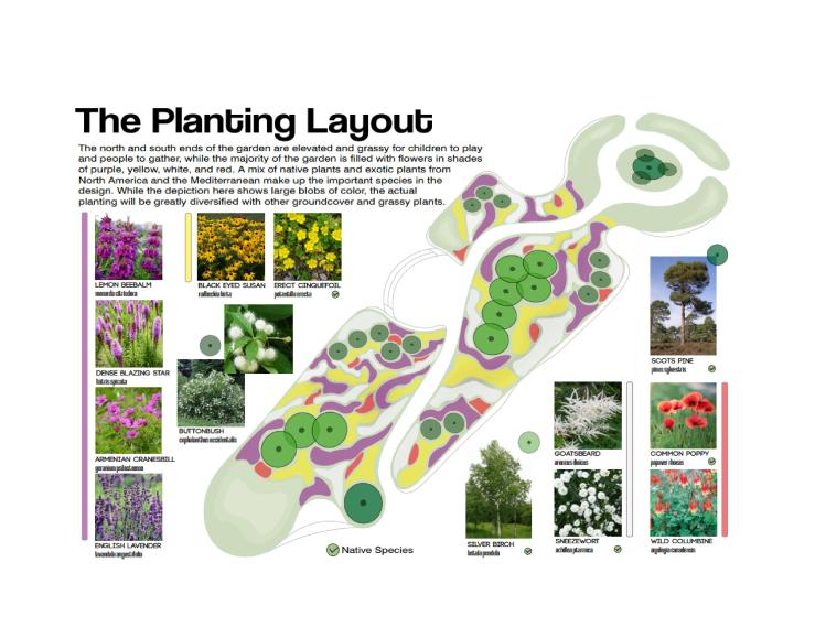 And my design was well received! When we toured southern Brunnshög, one of my professors told us about the flooding problems that are worsening in the lower parts of Lund, due to the development of Brunnshög, which was once an open green space. Instead of that space once being able to hold a lot of stormwater, it is now running down to the lower elevated parts of Lund and flooding the historical areas. Once I heard that, I knew my site had to have a rain garden. The specific site of my design was also lacking any kind of green community space, which my design incorporates as well. While I was concerned about my planting choices, as I had no clue about planting anything in Sweden, after researching growing zones, natives, and invasives, and talking with the landscape designer involved with the course, I came up with some of the key species that were planned to be in the design (some of which you Illinois native plant enthusiasts should know!). My professors commended my work and loved that my design had an environmental and societal purpose. I have the Red Oak Rain Garden and its team to help thank for that. It was the first real design I had ever made, and although I knew it was not going to go to fruition, I had such a great time creating it.