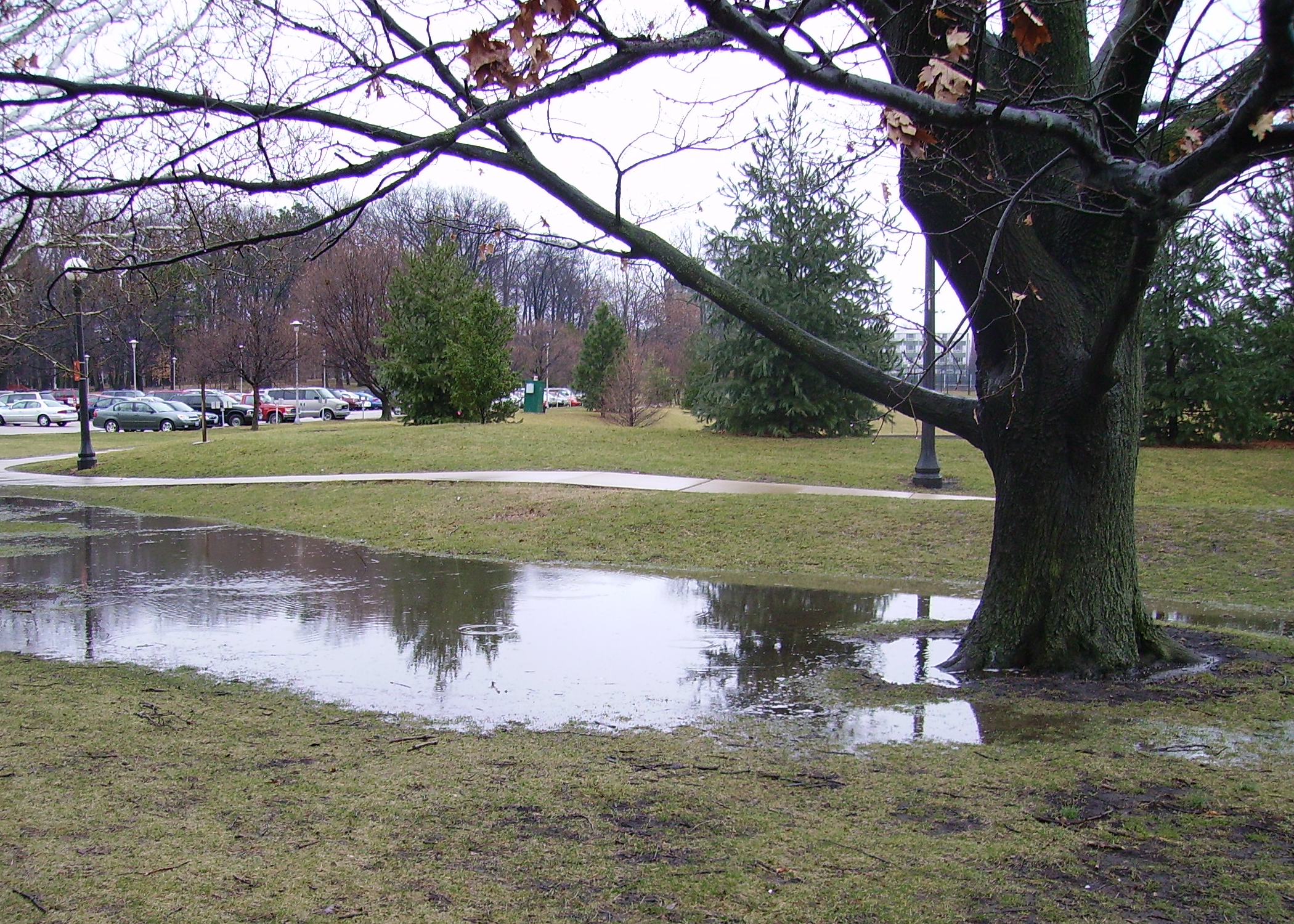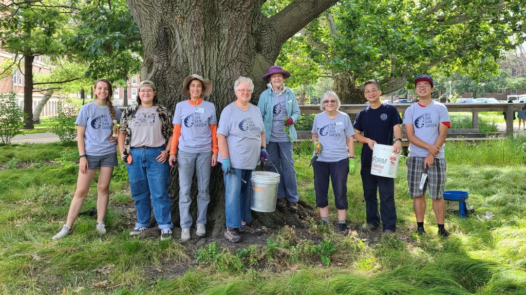 Did you know that RORG is beneficial for its red oak tree? Before the rain garden was installed, the oak had “wet feet” during storms, preventing this magnificent tree from thriving. People passing through also used to experience wet feet when rainwater flooded the sidewalk. In fact, there was a time before RORG when the floodwaters rose so high that it seeped into the windows of neighboring Allen Hall, damaging equipment in the basement!