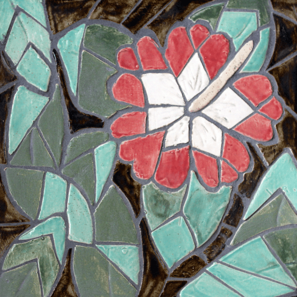 In fall 2019, twelve ARTS 210 students, under the instruction of Catherine Wiesener, each created 1’x1′ ceramic mosaic tiles. The tiles depict various species of flora and fauna that can be found in and around the Red Oak Rain Garden. This is part of an ongoing collaboration, and more tiles will be added in the future. Learn more here.