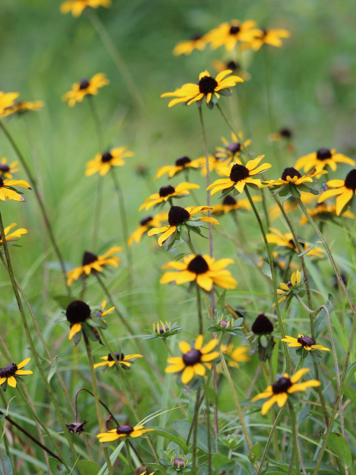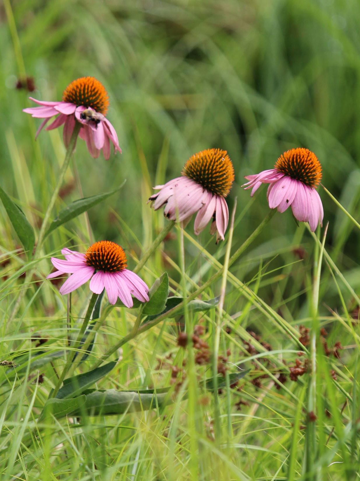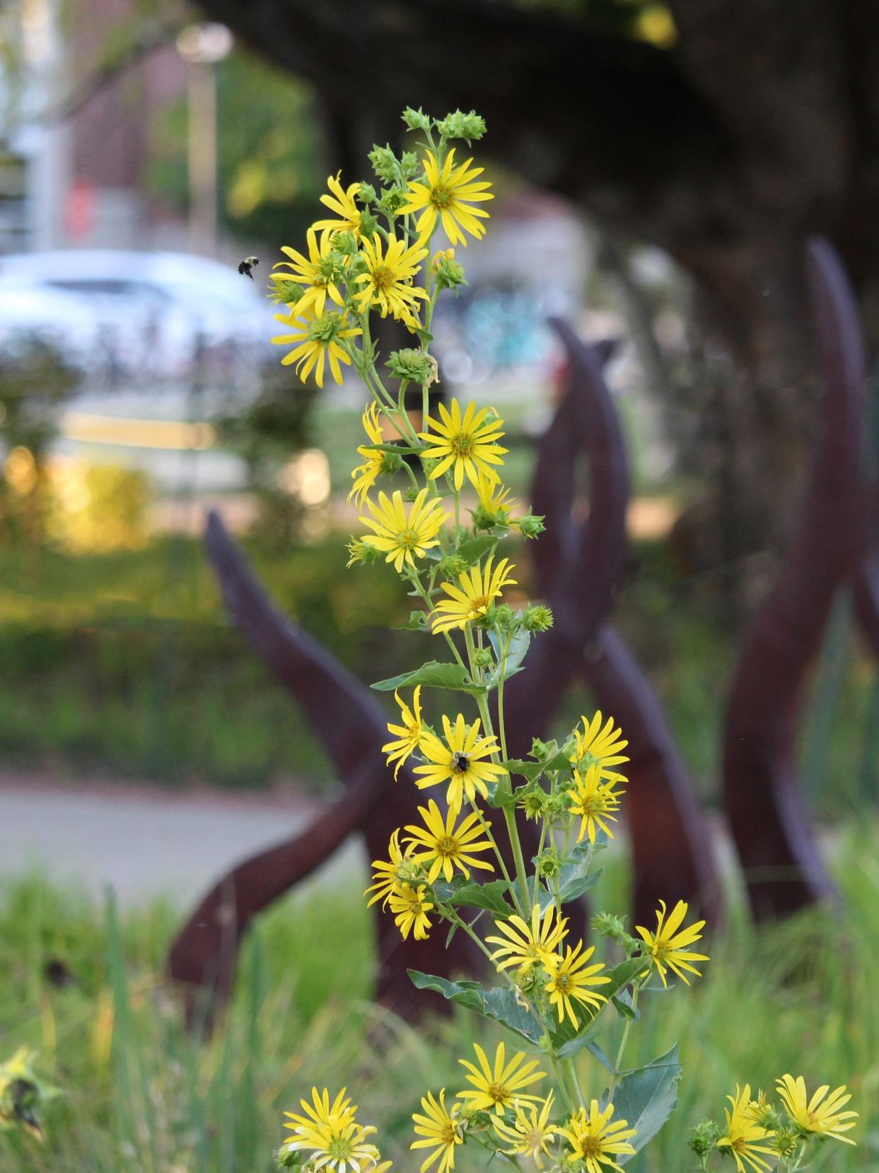 The rain garden is home to over 60 plant species, many native to east-central Illinois. As with any garden, right plant, right place is key. At the Red Oak Rain Garden, conditions range from wet and shady to dry and sunny, with everything in between. Another essential concept is ensuring continuous bloom throughout the growing season. Together, these create a thriving habitat for local wildlife.